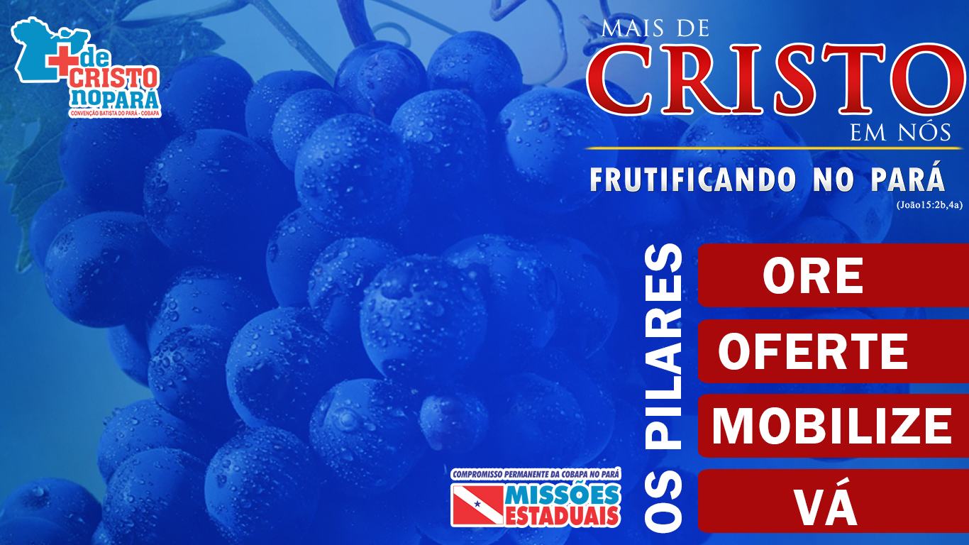 O cartaz da campanha é especialmente preparado para marcar visualmente as dependências de sua igreja, evidenciando que estamos em tempo de vivenciar mais especificamente Missões Estaduais. O tema Mais de Cristo em nós frutificando no Pará nos leva a refletir na importância de sermos servos e igrejas frutíferas e multiplicadoras, bem como nossas igrejas. Faça bom proveito desta ferramenta colocando-a em um local de boa visibilidade, use também as imagens disponibilizadas no DVD para serem usadas no Datashow.